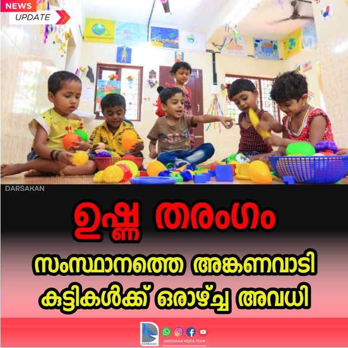 സംസ്ഥാനത്തെ അങ്കണവാടി കുട്ടികൾക്ക് ഒരാഴ്ച്ച അവധി. ഉഷ്ണ തരംഗം കാരണമാണ് വനിതാ ശിശുവികസന വകുപ്പിന്റെ തീരുമാനം. അങ്കണവാടികളുടെ മറ്റു പ്രവർത്തനങ്ങൾ പതിവ് പോലെ നടക്കും. ഈ കാലയളവിൽ കുട്ടികൾക്ക് നൽകേണ്ട സപ്ലിമെന്ററി ന്യൂട്രീഷ്യൻ വീടുകളിലെത്തിക്കുമെന്നും അറിയിച്ചു.