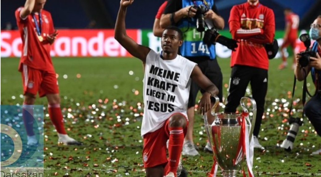 ലിസ്ബണ്: പോർച്ചുഗലിലെ ലിസ്ബണിൽ നടന്ന യുവേഫ ചാമ്പ്യൻസ് ലീഗ് ഫുട്ബോൾ ഫൈനലിലെ വിജയത്തിന് ശേഷം തന്റെ വിജയം യേശുവിനു സമർപ്പിച്ച് ജർമൻ ഫുട്ബോൾ ക്ലബായ ബയേൺ മ്യൂണിക് താരം ഡേവിഡ് അലാബ. കീരീട നേട്ടത്തിനു ശേഷം “Meine Kraft liegt in Jesus” അഥവാ “എന്റെ ശക്തി യേശുവിലാണ്” എന്നെഴുതിയ ടീ ഷർട്ട് അണിഞ്ഞാണ് അദ്ദേഹം തന്റെ ദൈവവിശ്വാസം പരസ്യമായി പ്രഖ്യാപിച്ചിരിക്കുന്നത്. “എന്റെ ശക്തി യേശുവിലാണ്” എന്ന് ആലേഖനം ചെയ്ത ടി ഷര്ട്ടു ധരിച്ചു ട്രോഫിയുമായി മുട്ടുകുത്തി ഇരുകൈകളും ആകാശത്തിലേക്ക് ഉയര്ത്തി ദൈവത്തിനു നന്ദി പറയുന്ന താരത്തിന്റെ ചിത്രം സാമൂഹ്യ മാധ്യമങ്ങളിൽ ഇതിനോടകം വൈറലായിട്ടുണ്ട്.