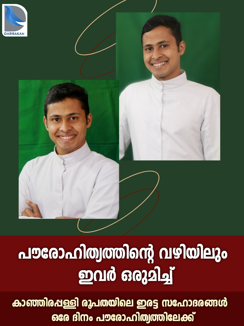 ഡിസംബര് 29 രാവിലെ വണ്ടന്പതാല് സെന്റ് പോള് പള്ളിയില്വച്ച് നടക്കുന്ന തിരുക്കര്മ്മങ്ങളില്വച്ച് കാഞ്ഞിരപ്പള്ളി രൂപതാധ്യക്ഷന് മാര് ജോസ് പുളിക്കലിന്റെ കൈവയ്പ് ശുശ്രൂഷവഴി ഇരുവരും കത്തോലിക്കാസഭയിലെ ഇരട്ടവൈദികരായി അഭിഷിക്തരാകും.