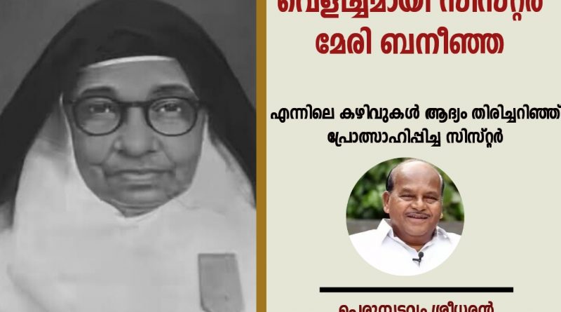 അവിടെനിന്നാണ് കവിത എഴുതാന് എനിക്കൊരു പ്രോത്സാഹനം കിട്ടിയത്. മലയാളത്തിലെ മഹാകവയിത്രി സിസ്റ്റര് മേരി ബനീഞ്ഞയാണ് ആ കന്യാസ്ത്രീ അമ്മ.